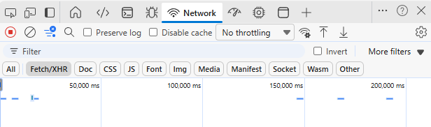Såhär ser det ut när man valt Network tabben i Microsoft Edge.
